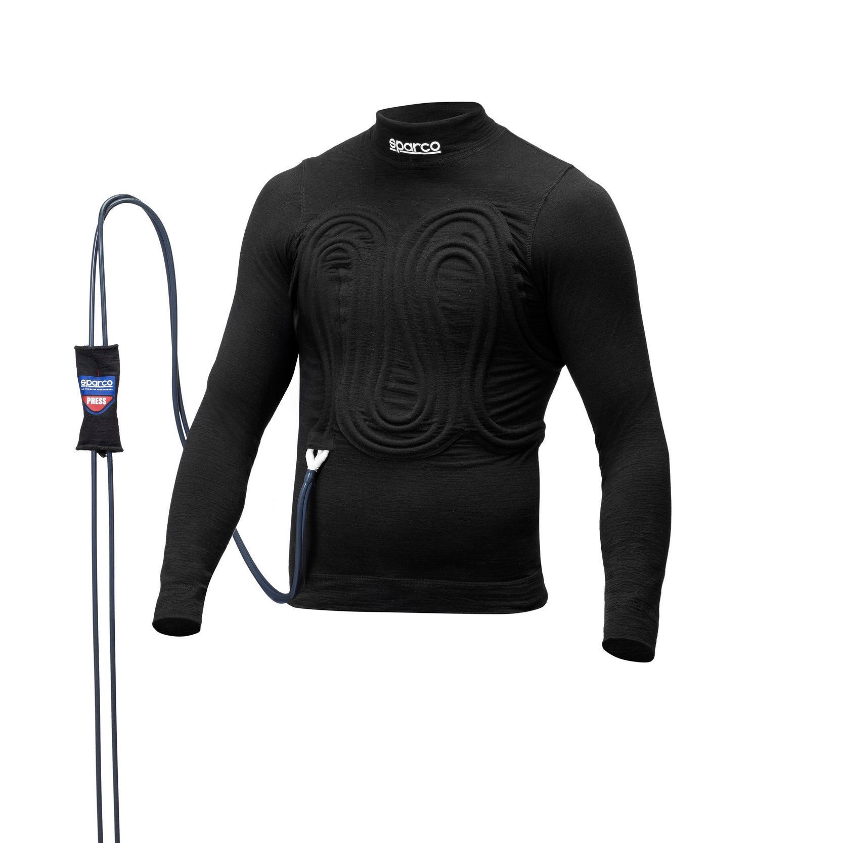 Underställ Tröja Cooling System Front/Back från Sparco är ett avancerat och FIA- samt SFI-godkänt flamskyddat plagg, utvecklat för förare som kräver maximal temperaturkontroll under tävling. Systemet är integrerat i plagget och består av ultra flexibla och tunna mikrorör placerade över förarens överkropp för effektiv kylning.